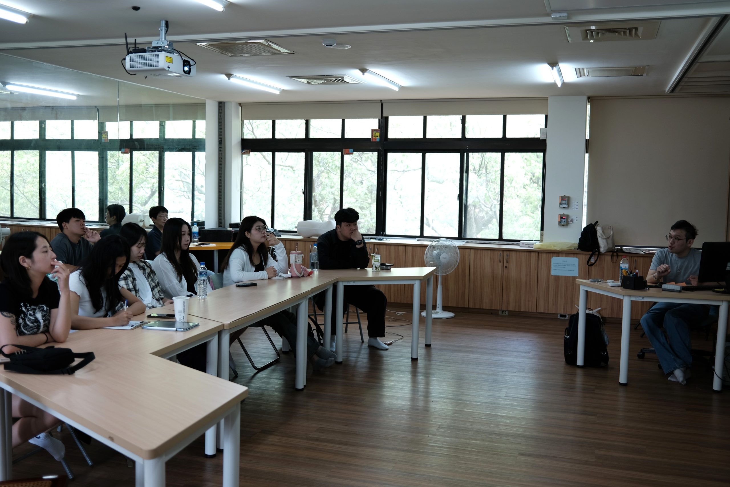 講座過程中亦安排同學進行經驗交流與分享,多位同學主動回應,分享自身參與劇場或活動製作之經驗,包括籌備過程中所面臨的挑戰及其因應方式,現場互動熱絡。